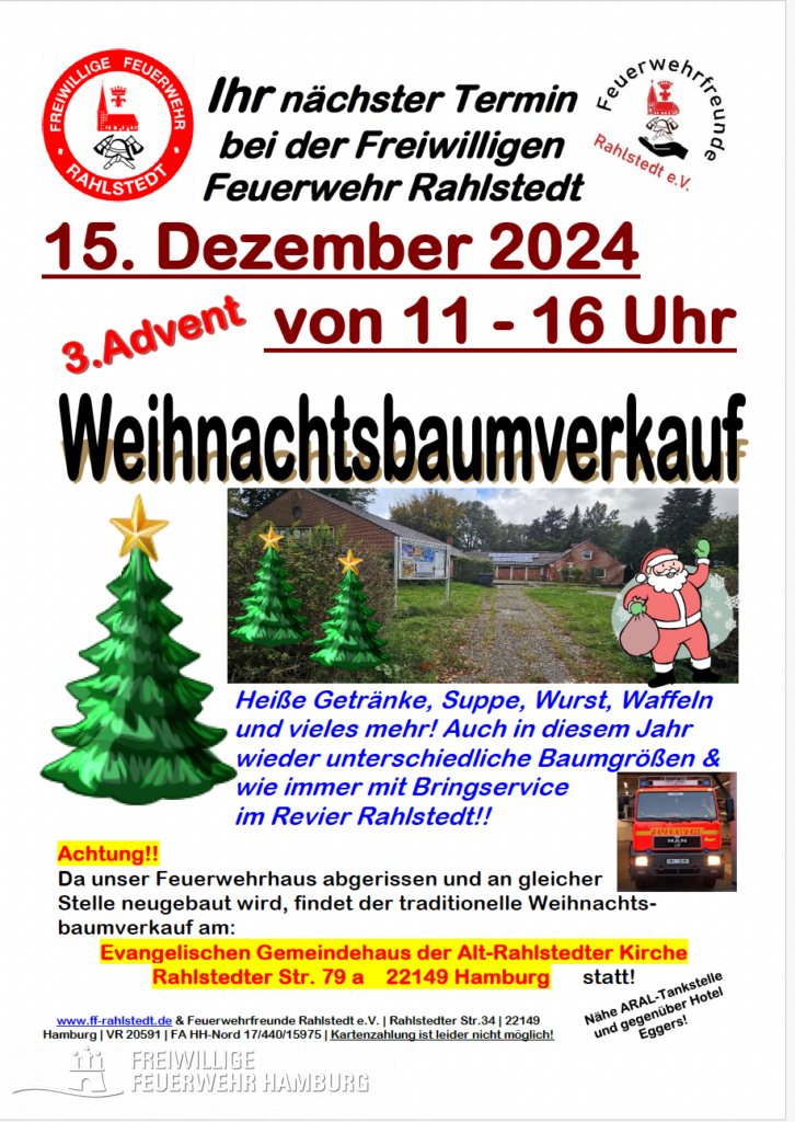 !! Achtung !! Dieses Jahr findet der Verkauf am Gemeindehaus der Evangelischen Alt-Rahlstedter Kirche, in der Rahlstedter Straße 79a.