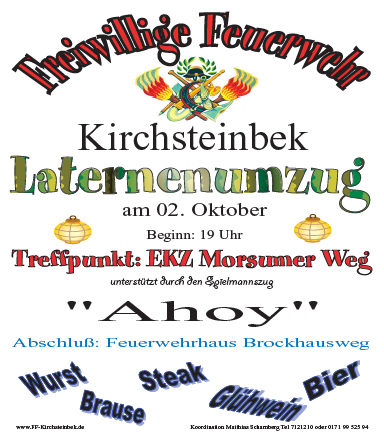 Der Laternenumzug der FF-Kirchsteinbek findet auch in diesem Jahr wieder am 2. Oktober statt.