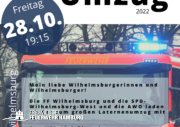 Die Freiwillige Feuerwehr Wilhelmsburg lädt zum gemeinsam Laternebasteln ein! Für Speiß und Trank ist gesorgt, Bastelmaterial werden zur Verfügung gestellt! Die gebastelten Feuerwehrlaternen können dann am darauffolgenden Laternenumzug, am 28.10.2022, präsentiert werden. Die Freiwillige Feuerwehr Wilhelmsburg freut sich über Ihren Besuch!